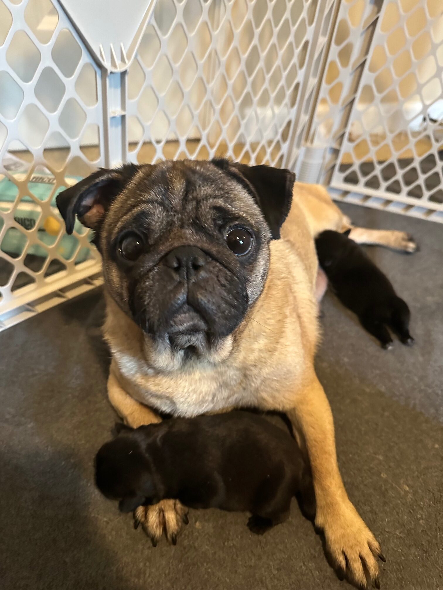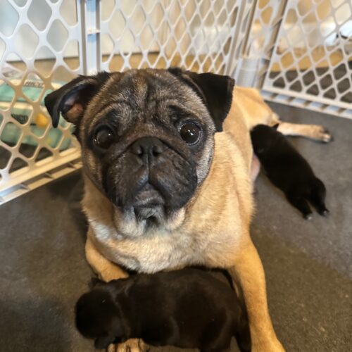Amari will stay in foster care until her pups are weaned and she’s ready for her own forever home — but for now, she’s right where she belongs: safe, healing, and cherished. Her puppies will be ready to go home the week of Christmas — a little holiday magic wrapped in pug wrinkles and puppy kisses.