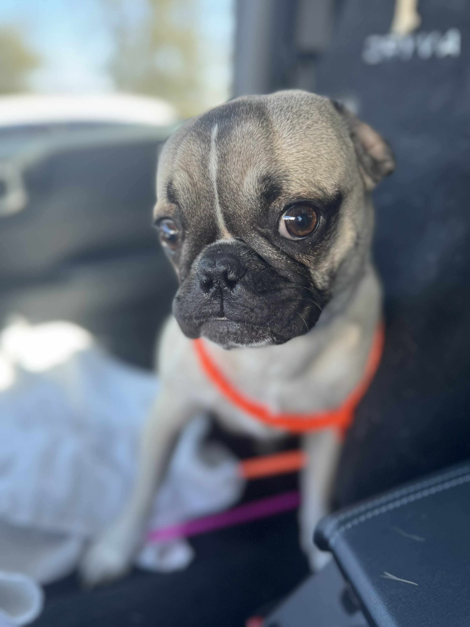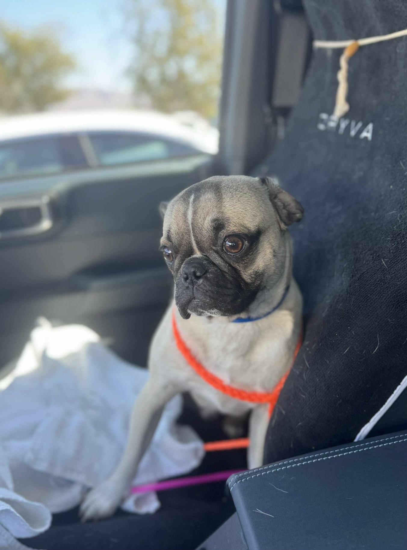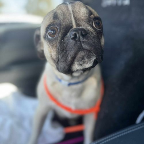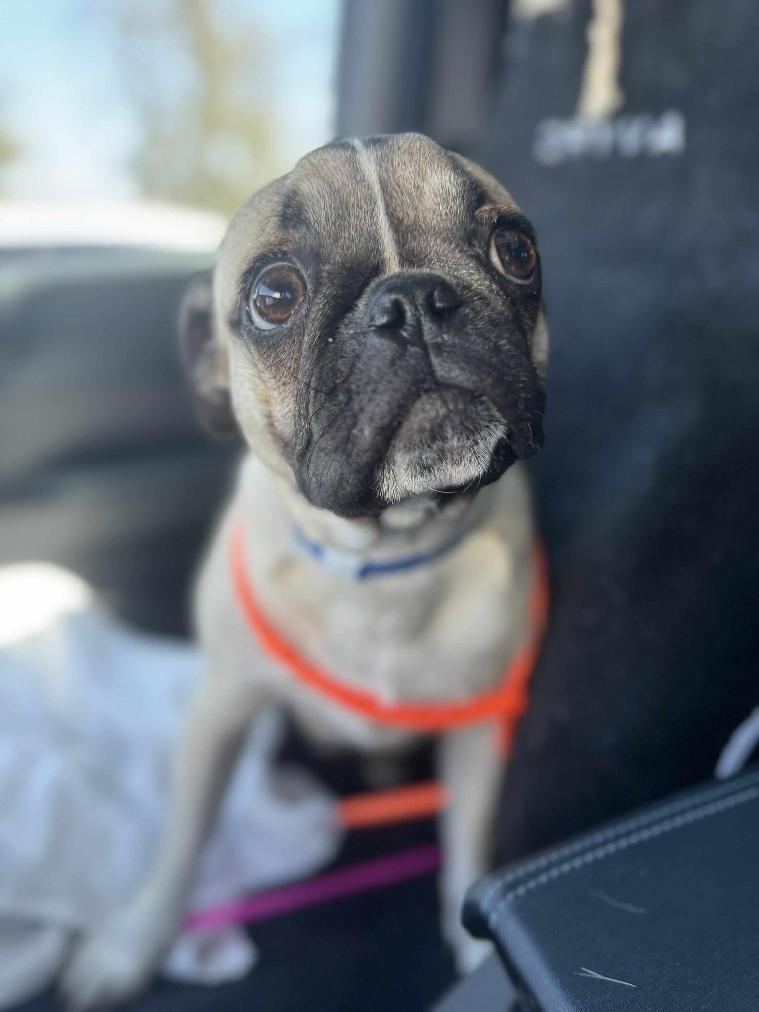 Meet Carlitos! A little ~1 year old boy with the most adorable teefers and markings. Originally from Las Vegas, NV, Carlitos came to Evergreen Pug Rescue after being found as a stray and completing the necessary holds.