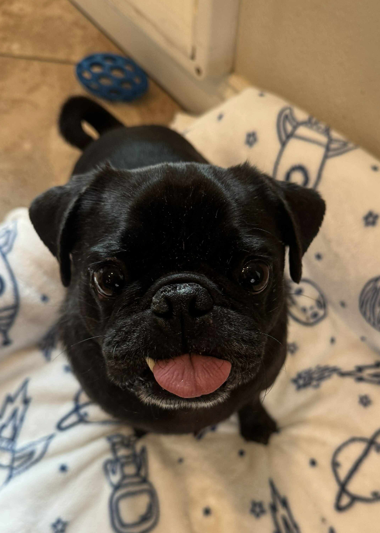 Charcoal is a 3-year-old pug with a heart full of love and a big smile for everyone he meets. Surrendered by a family who was rarely home, he’s now ready for a life where togetherness is the norm. Charcoal is wonderful with kids and gets along beautifully with other dogs, making him an easy fit for a playful, busy household. What he wants most is a family that’s around to share the everyday joys—walks, snuggles, and being part of the action. With Charcoal, you’ll gain not just a pet, but a devoted companion who will thrive in the warmth of family life.