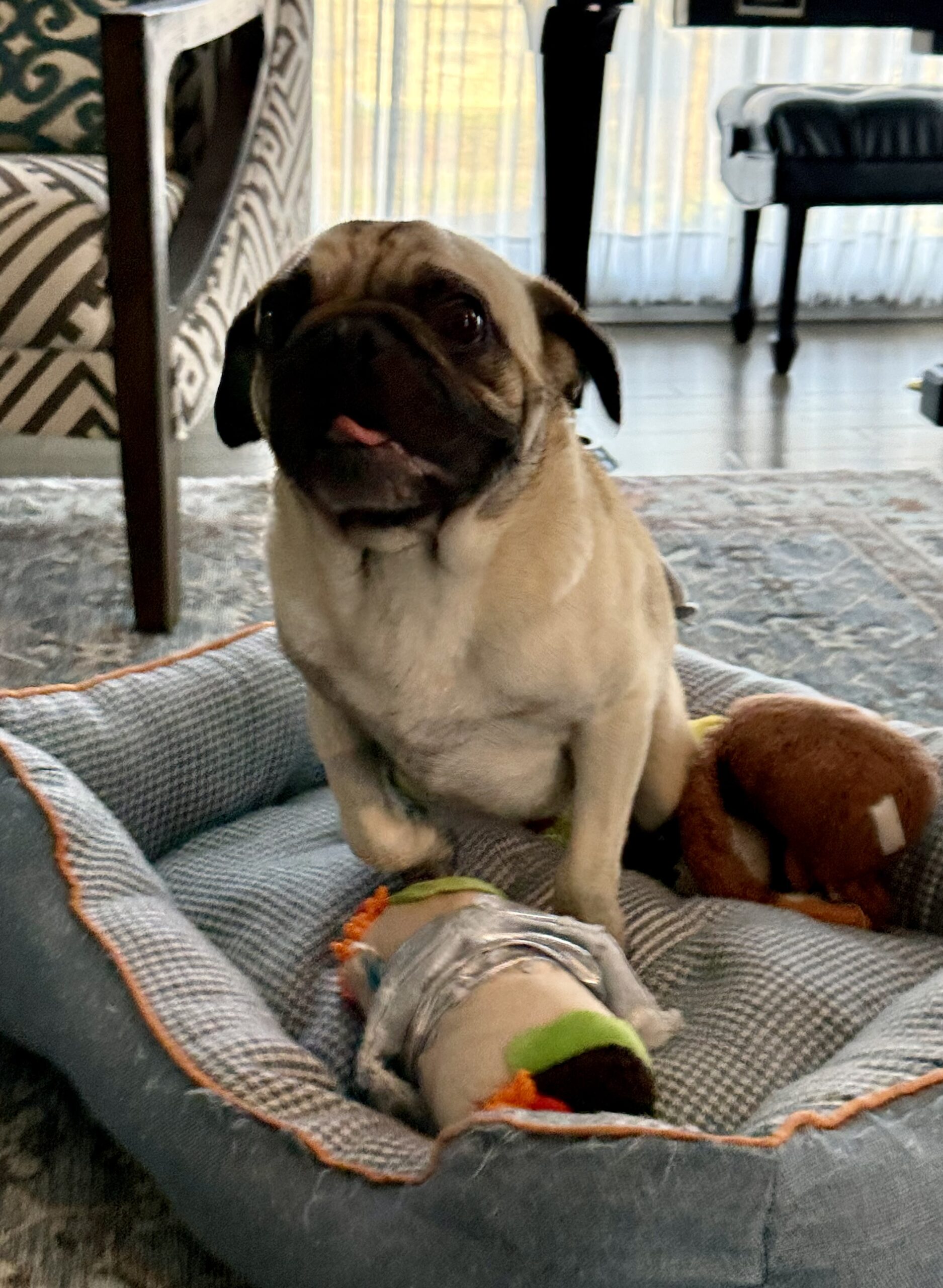 George is a gentle little soul with a heart just waiting to bloom. At just one year old, this sweet pug is calm, a bit shy, and takes in the world with quiet curiosity. While he may be timid at first, George is the kind of dog who forms deep, meaningful bonds once he feels safe—and watching his confidence grow is something truly special. He’s looking for a patient, loving home that will give him the time and reassurance he needs to shine.