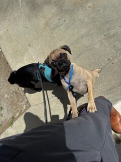 Griffin will be adopted with a puppy addendum. Evergreen Pug Rescue covers the cost of his neuter at one of our approved clinics when he’s old enough.