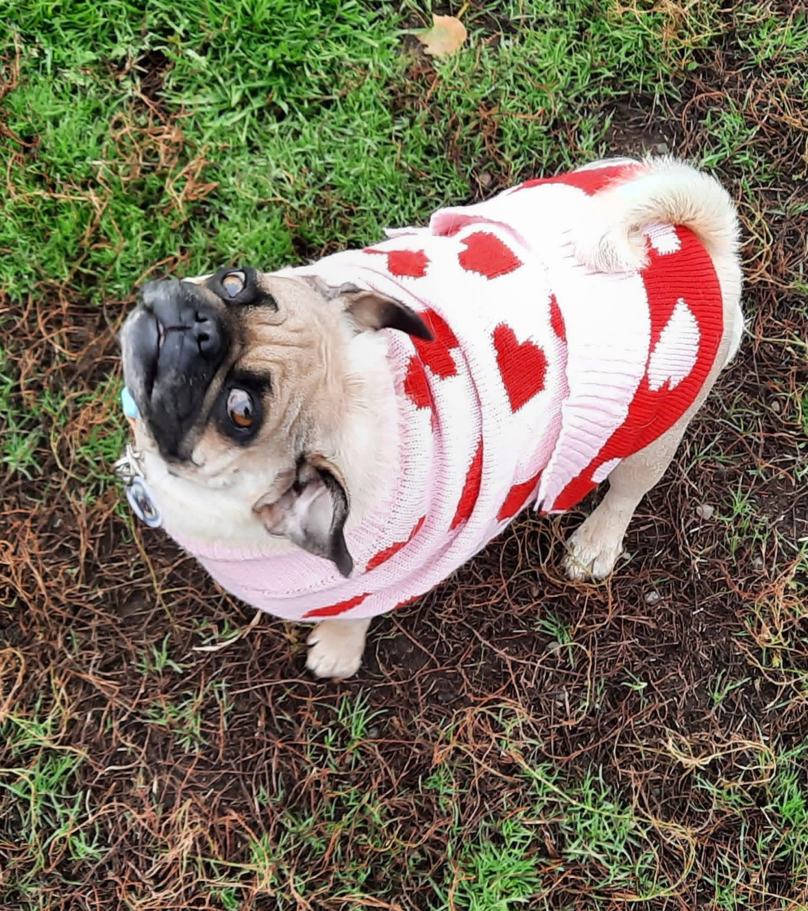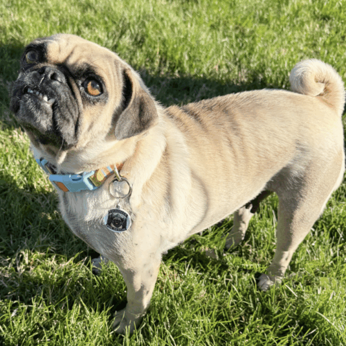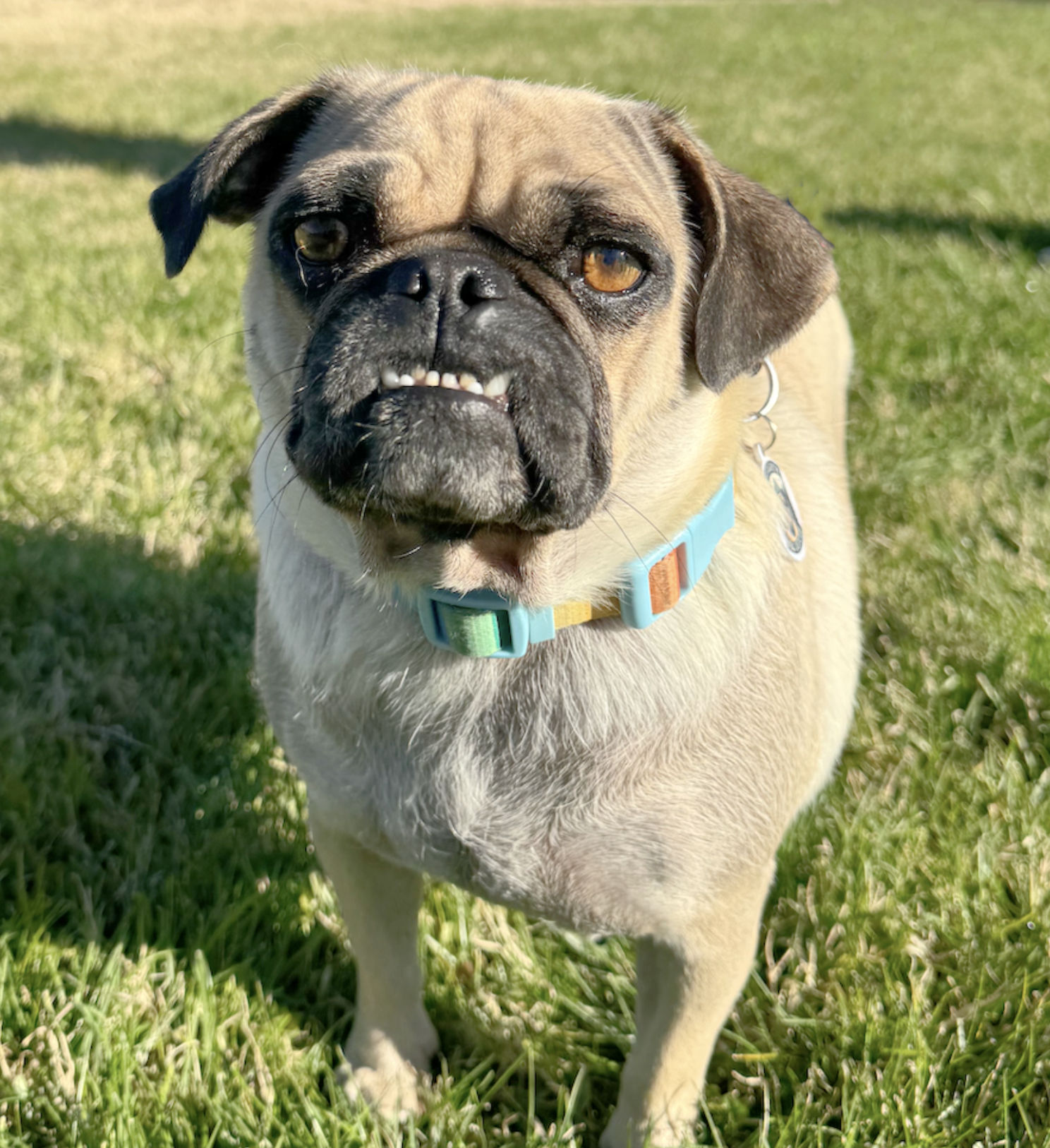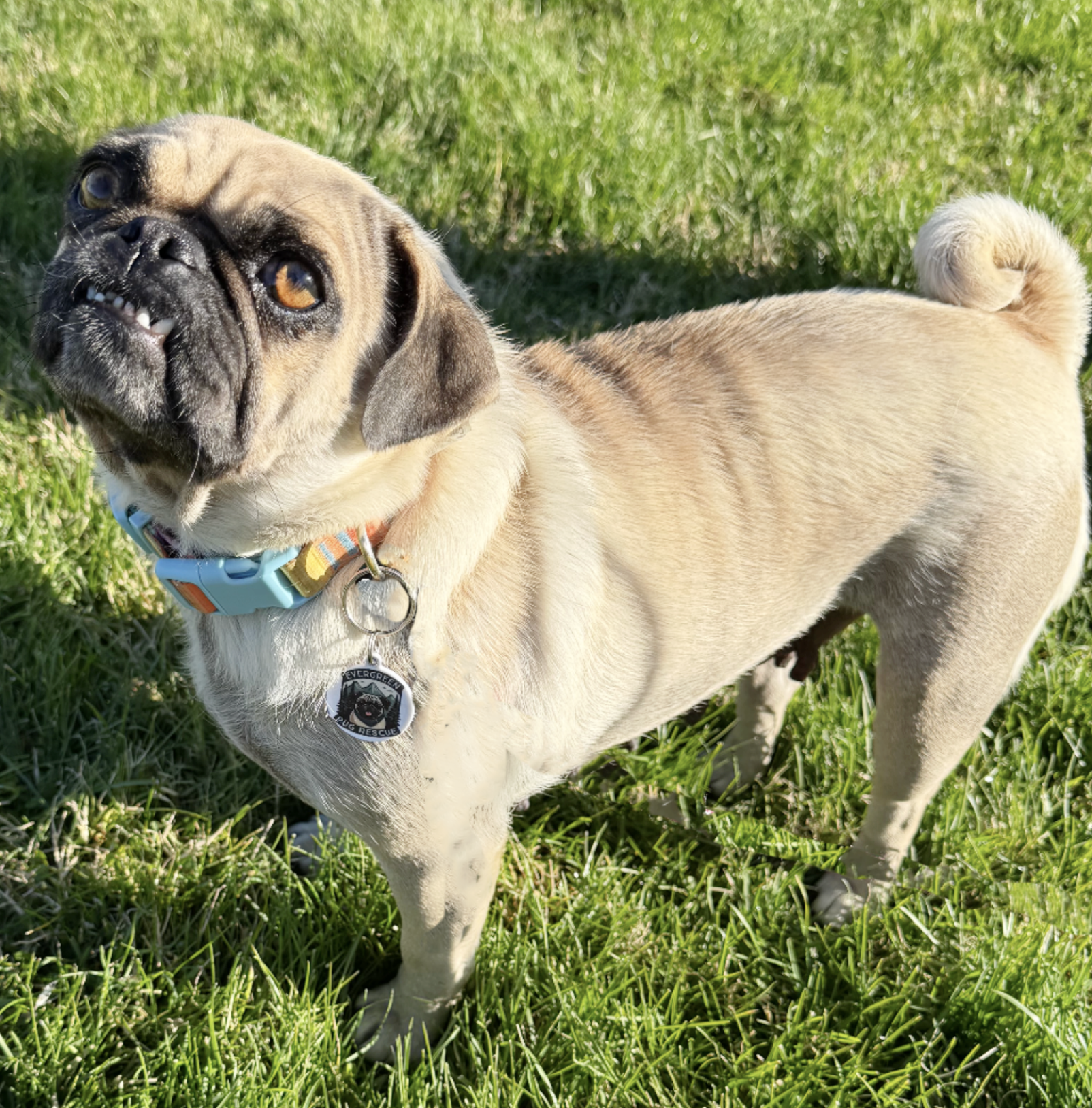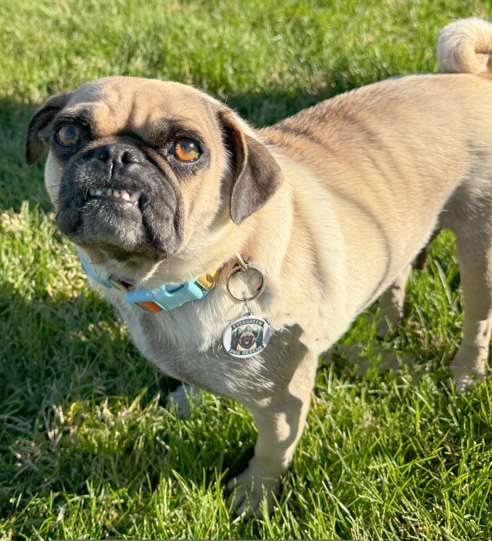 She’s as sweet as they come — loves belly rubs, cuddles like a baby, and has the softest fur ever. Her foster mom says she’s a dream… except when it comes to photos! Ivy might just be one of the hardest pugs to photograph — but trust us, she’s even more beautiful in person.