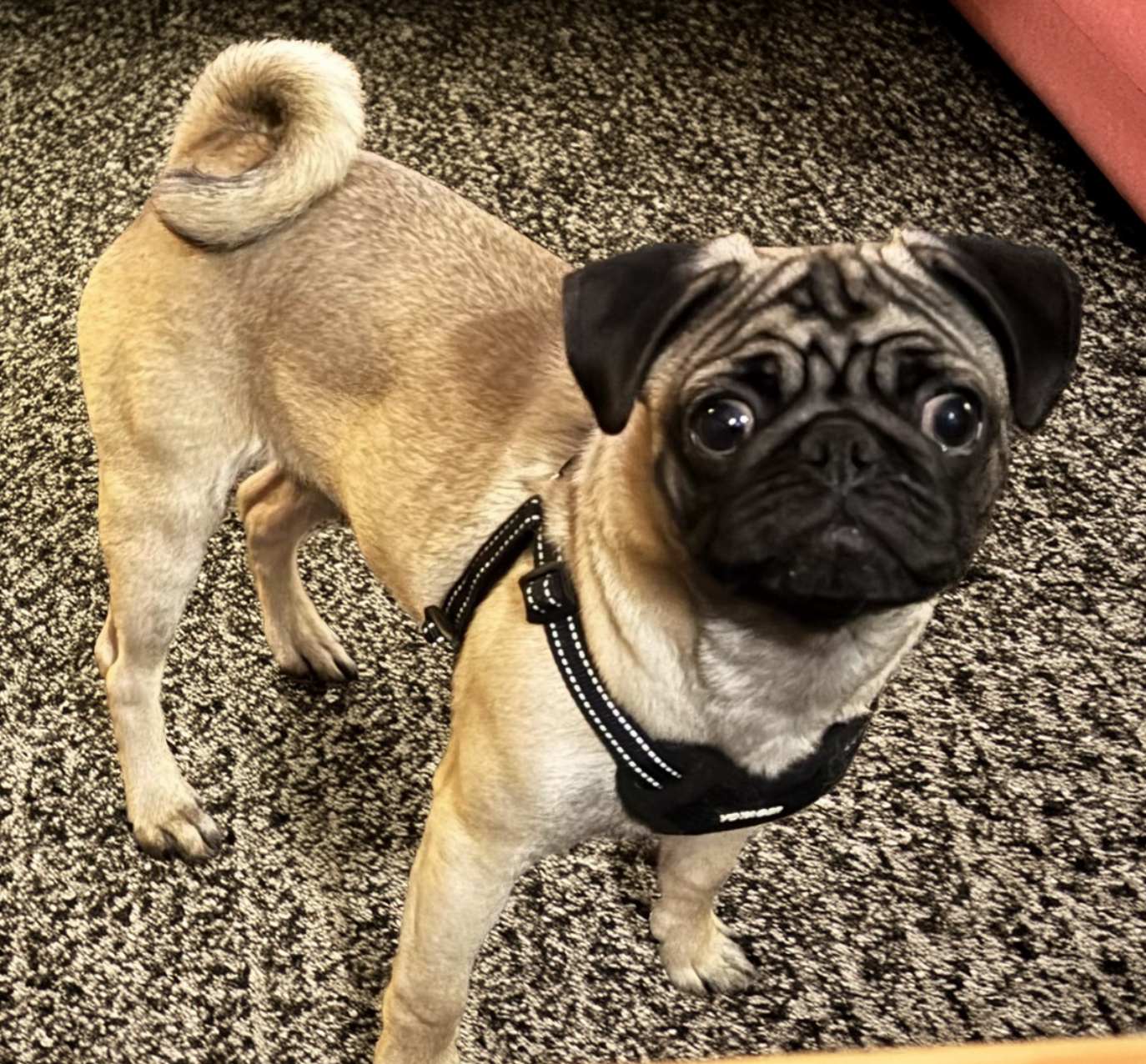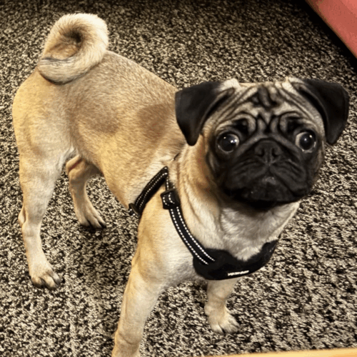 Lucky is a six-month-old pug full of curiosity, joy, and classic puppy enthusiasm. He’s in that playful, busy stage where everything is exciting and every day is an adventure. Lucky was surrendered when his puppy energy became more than his previous home expected, but in rescue he’s shown himself to be exactly what a young dog should be: social, affectionate, and eager to engage with the world around him.