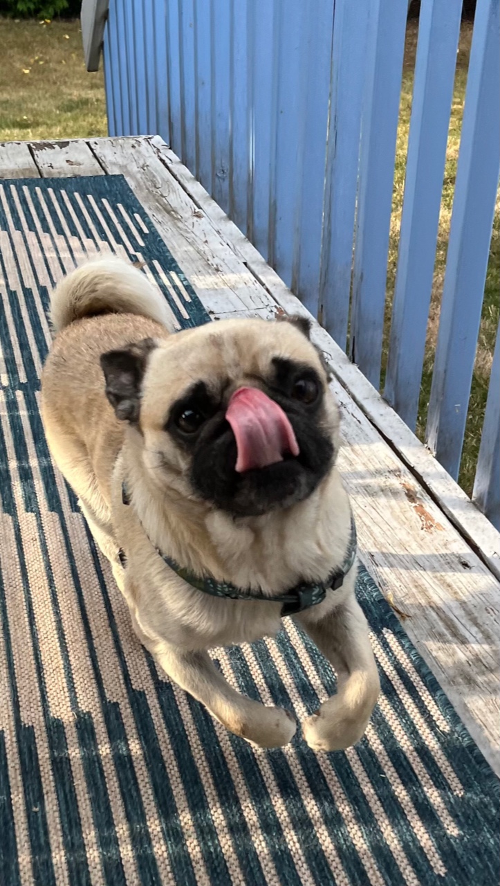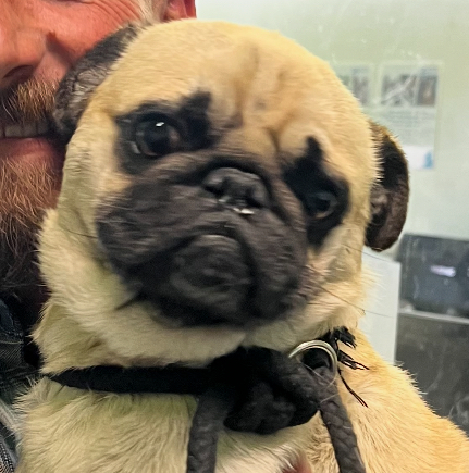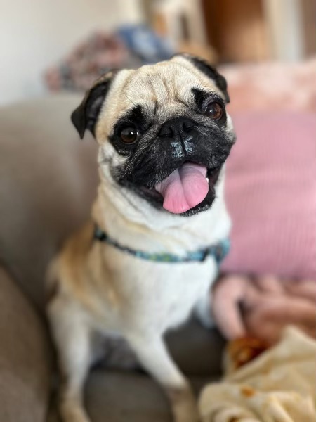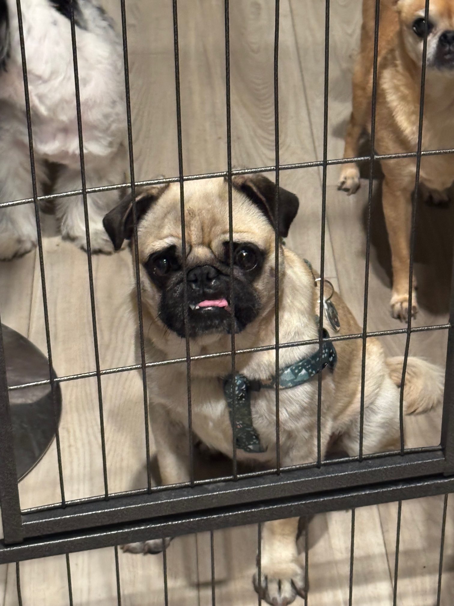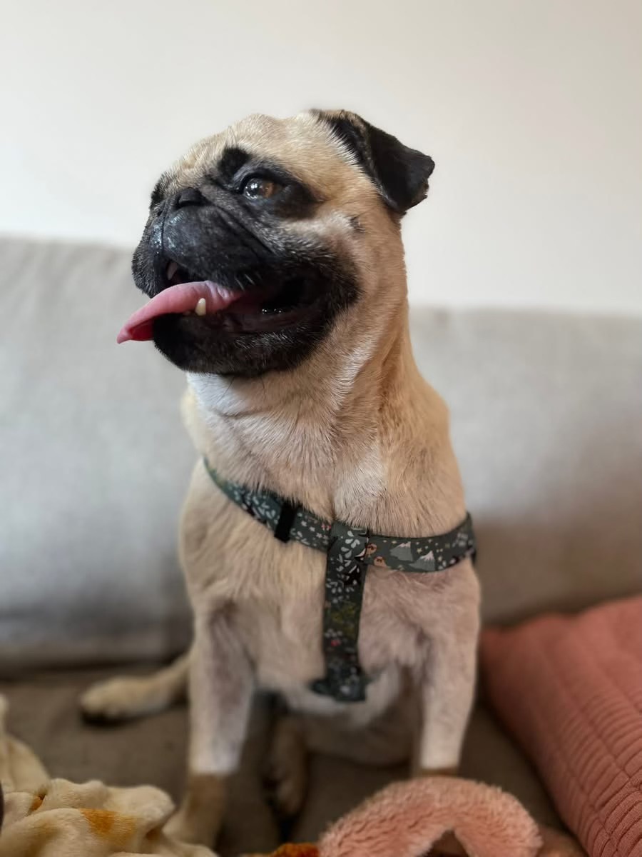 Matty is a four-year-old pug who steals hearts with his unforgettable grumpy-cat expression and irresistible charm. Behind the silly looks is the sweetest soul you could ever meet—gentle, affectionate, and full of love. Whether he’s making you laugh with his cartoon-worthy face or snuggling close, Matty reminds us daily that pugs are pure joy wrapped in wrinkles.