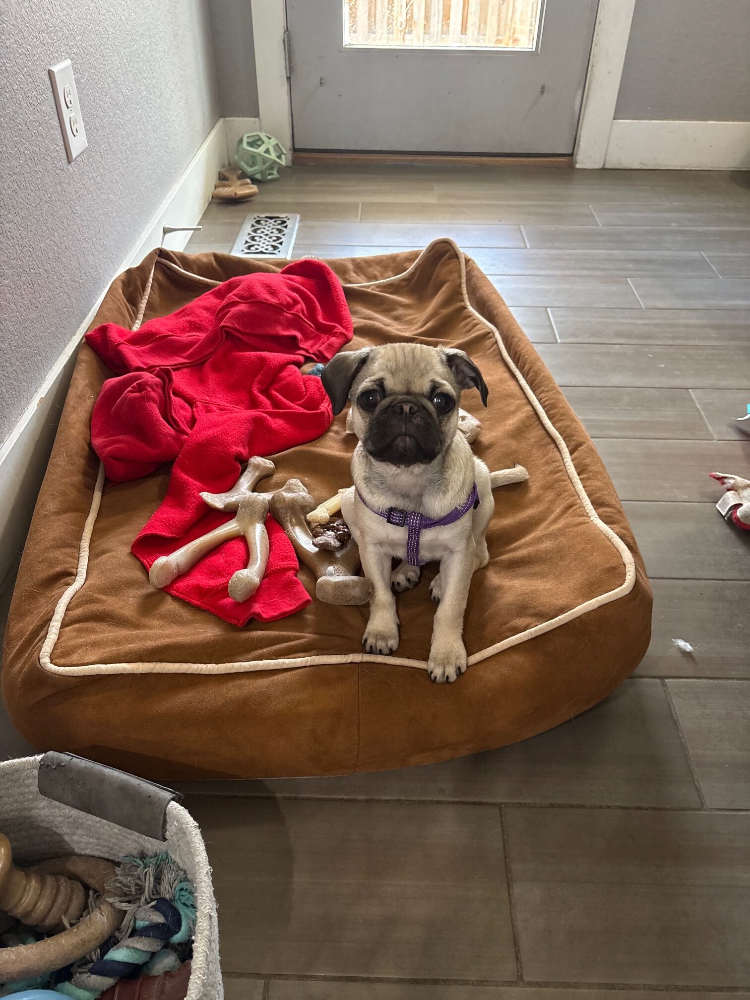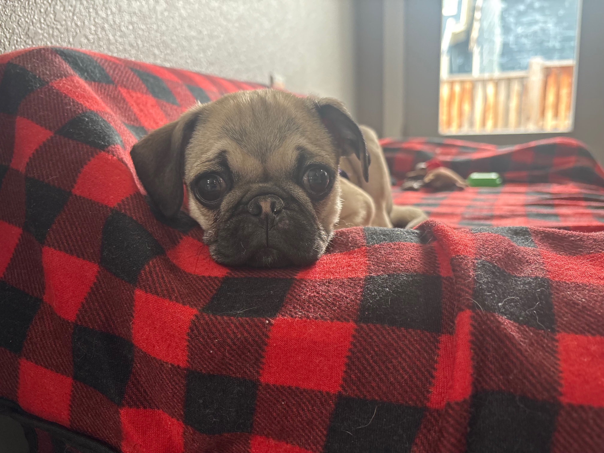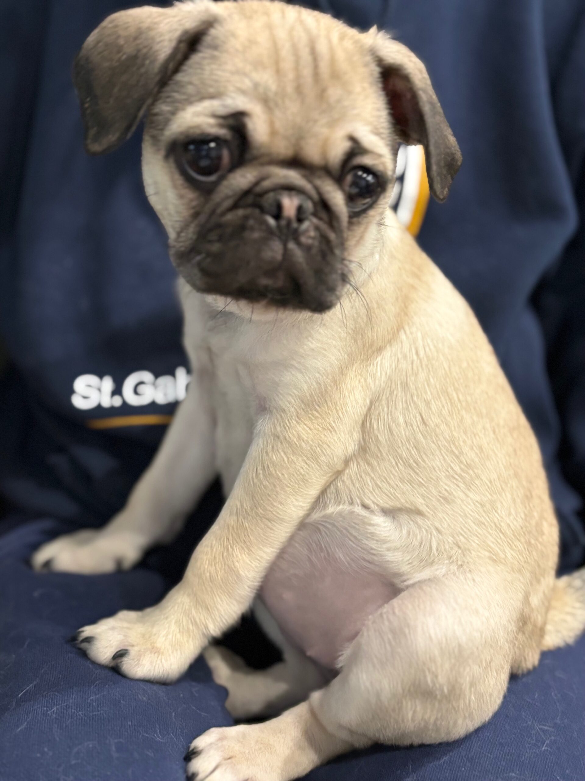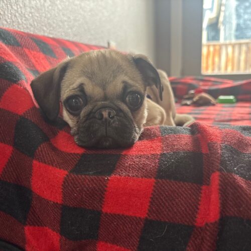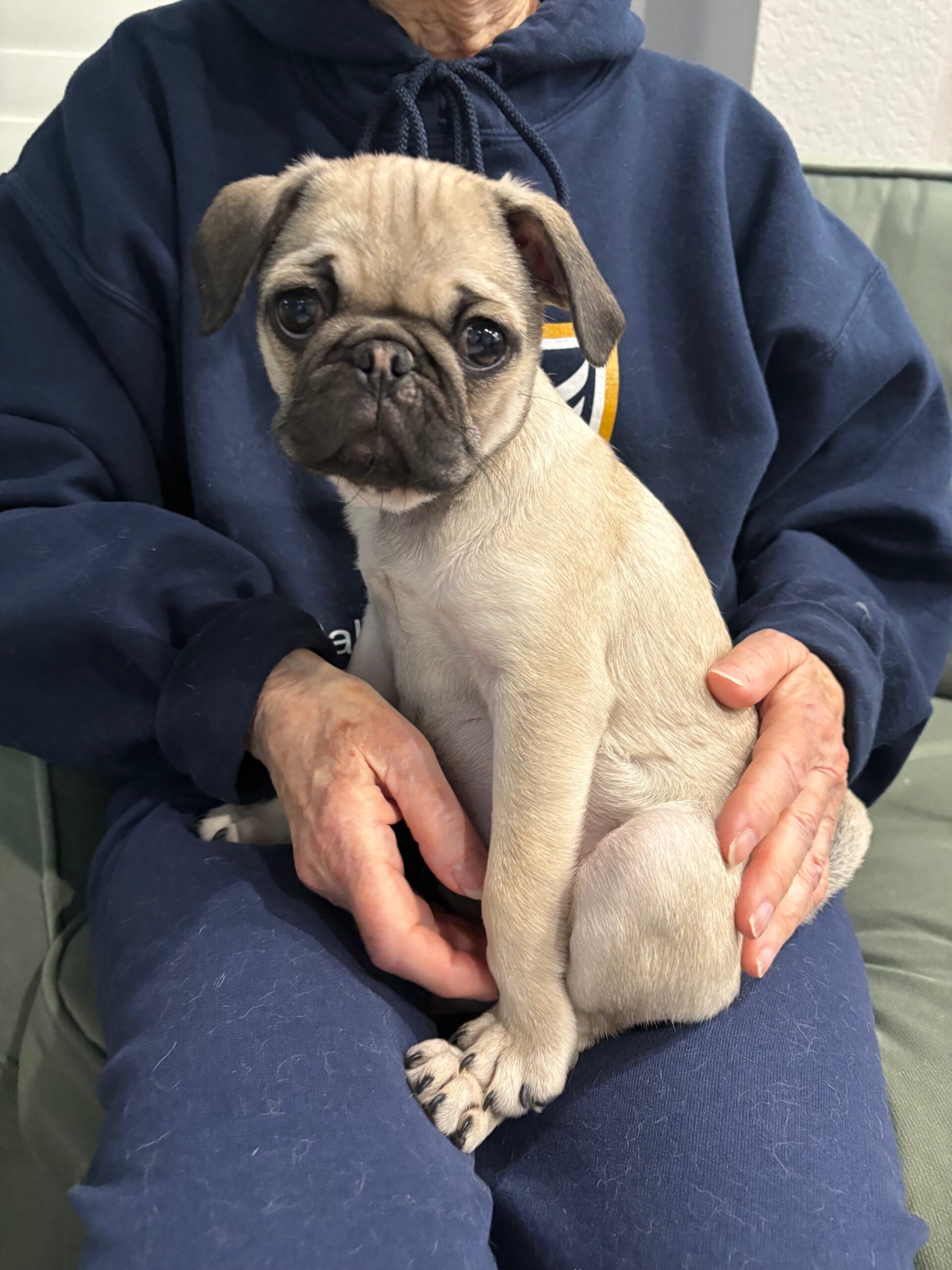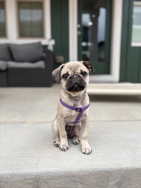Muffie is everything you dream of when you think “pug puppy.” At just 3 months old, this darling little girl has the sweetest face and an even sweeter personality to match. She loves everyone she meets, brings playful puppy energy wherever she goes, and perfectly balances her days with zoomies, cozy naps, and enthusiastic mealtimes. Muffie is pure joy in a tiny, wrinkly package—and she’s ready to steal hearts wherever she lands.