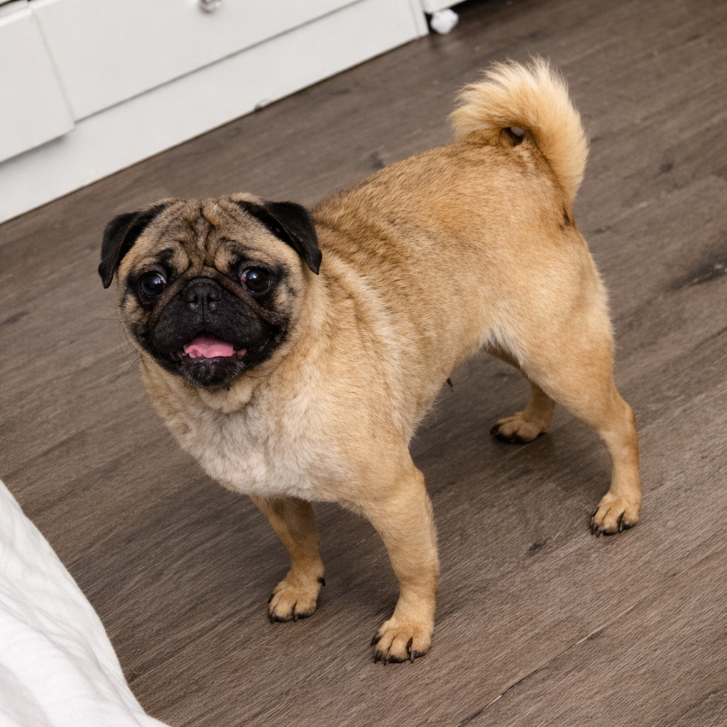 She's an absolute sweetheart. Good with dogs and people. She has energy and would love a home with a yard she could run and explore or an active family that's ready to take her on the go. She came to our One Year party and had the best time cruising the room. She will definitely thrive in a home with another pug!